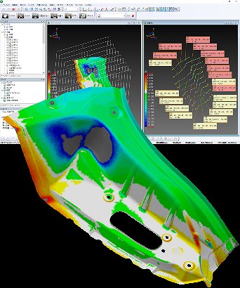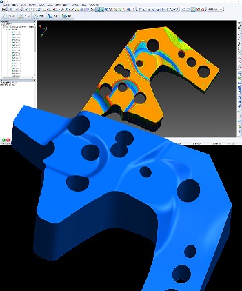 3Dスキャナで取得した点群データと3DCADデータを比較し、カラーマップで誤差を可視化。