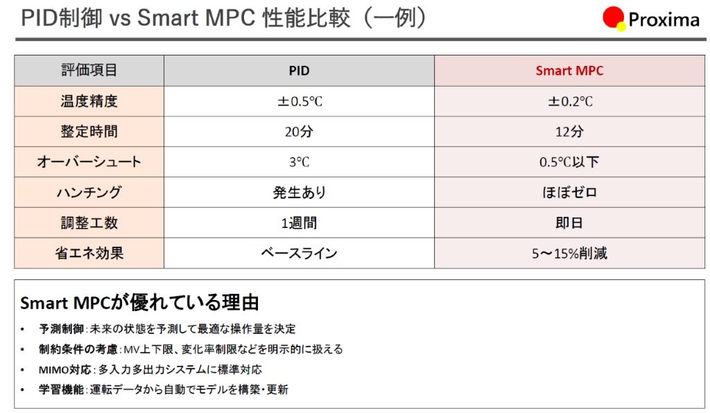 | 比較項目 | 従来のPID制御 | Smart MPC |