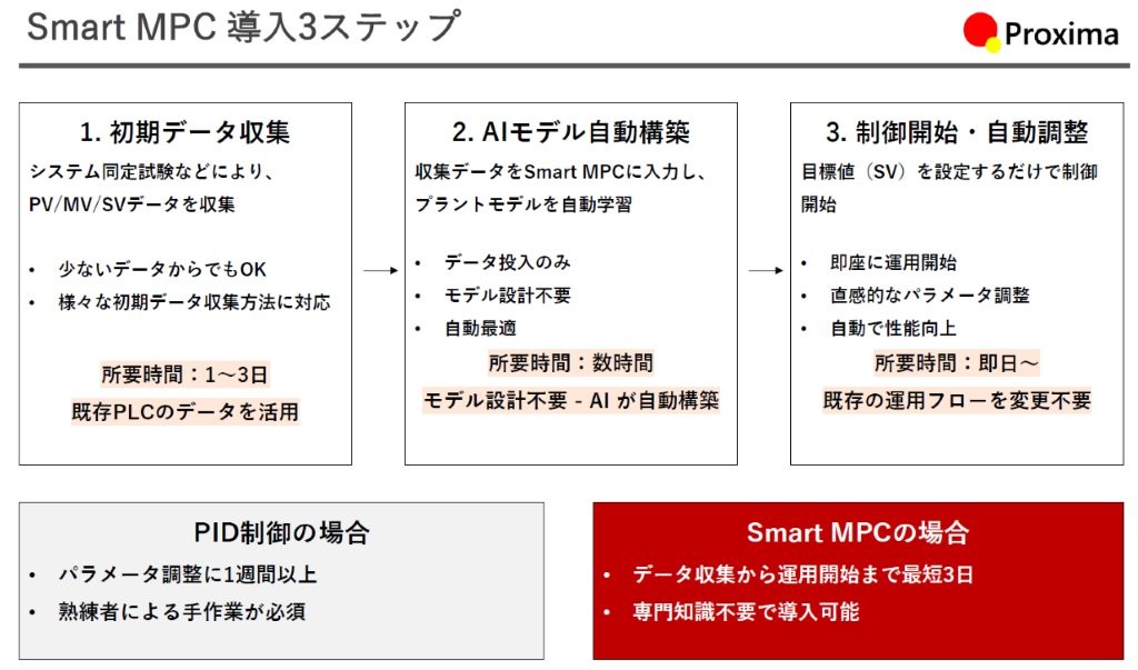 Smart MPC導入までには3つのステップが考えられます。下の表にもまとめてありますが、難しい設定は必要なく、最短3日での運用を開始することが可能です。