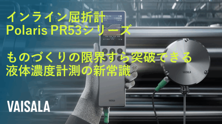 なぜ今、「インライン屈折計」なのか? 製造現場では 「サンプリングの手間」「連続計測のばらつき」「人手不足」「カーボンニュートラル対応」など複数の課題が同時に発生しています。 ヴァイサラの屈折計は配管・タンク内 … 続きを読む VAISALAインライン屈折計 Polaris PR53シリーズ| ものづくりの限界すら突破できる液体濃度計測の新常識